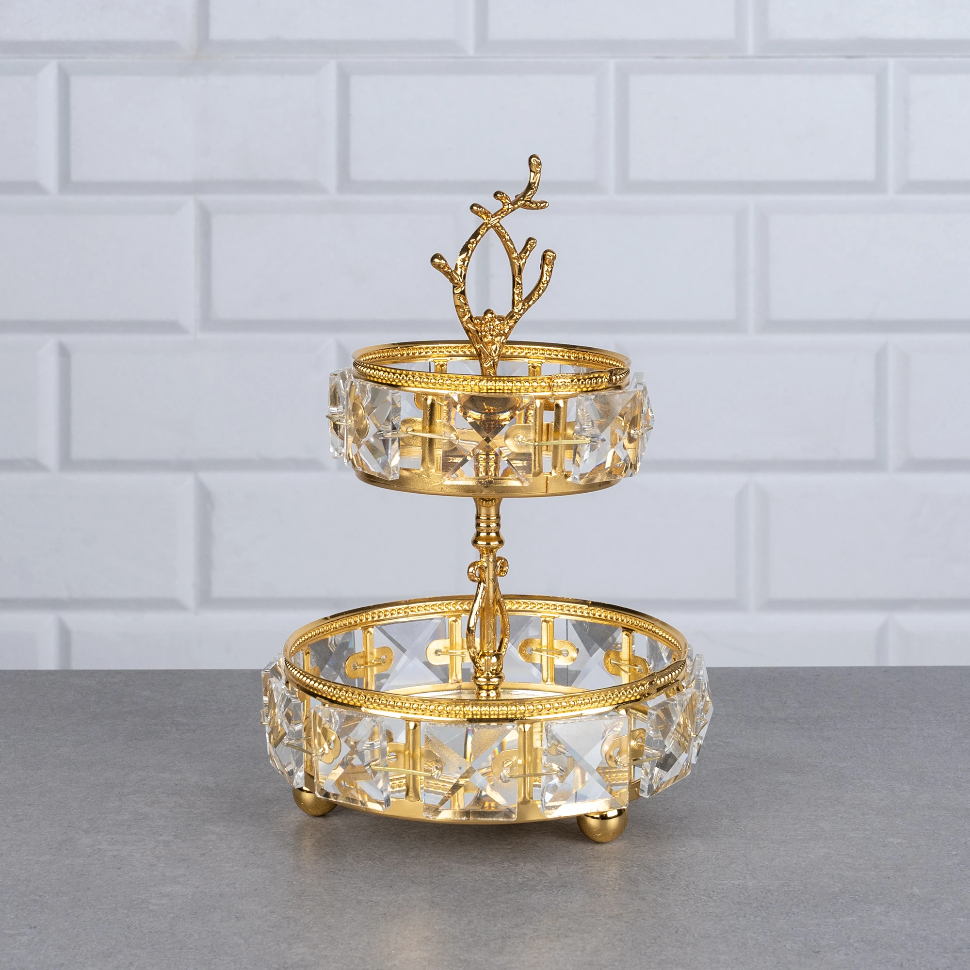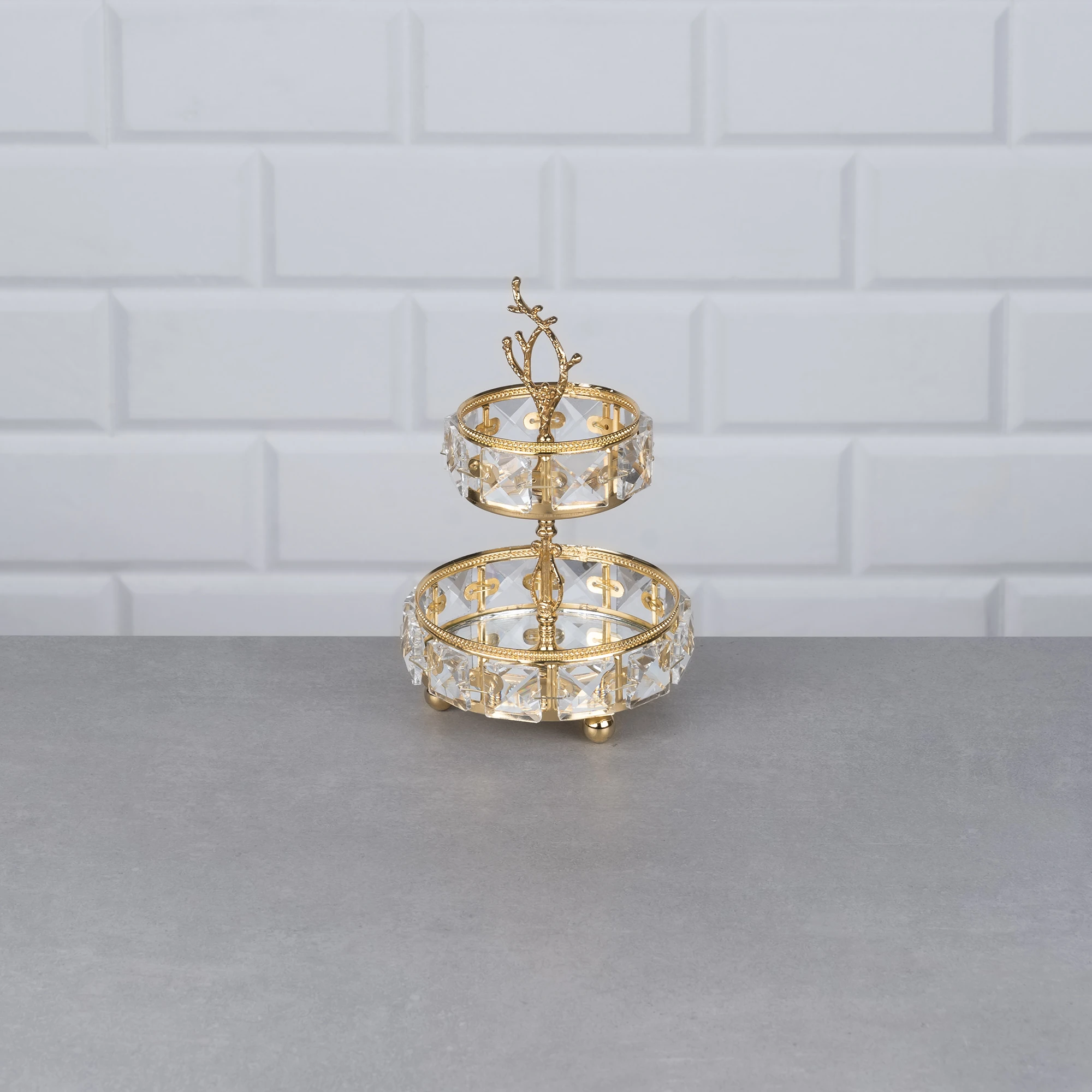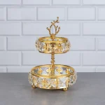 ALTIN MİNİ YUVARLAK 2KAT KRİSTAL SUNUM 12x12x17cm.