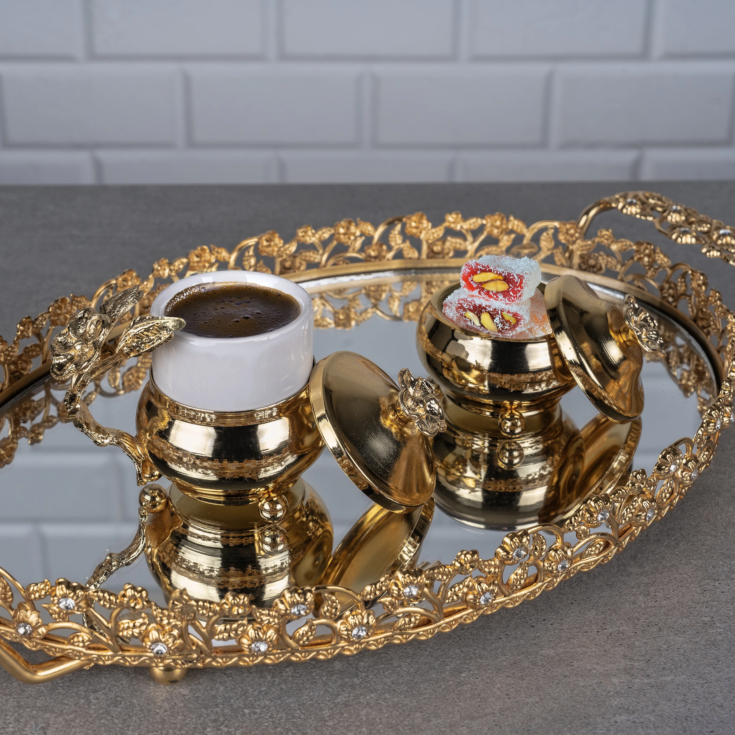 ZAMAKLI KAPAKLI KAHVE FİNCANI VE LOKUMLUK SET 2Lİ