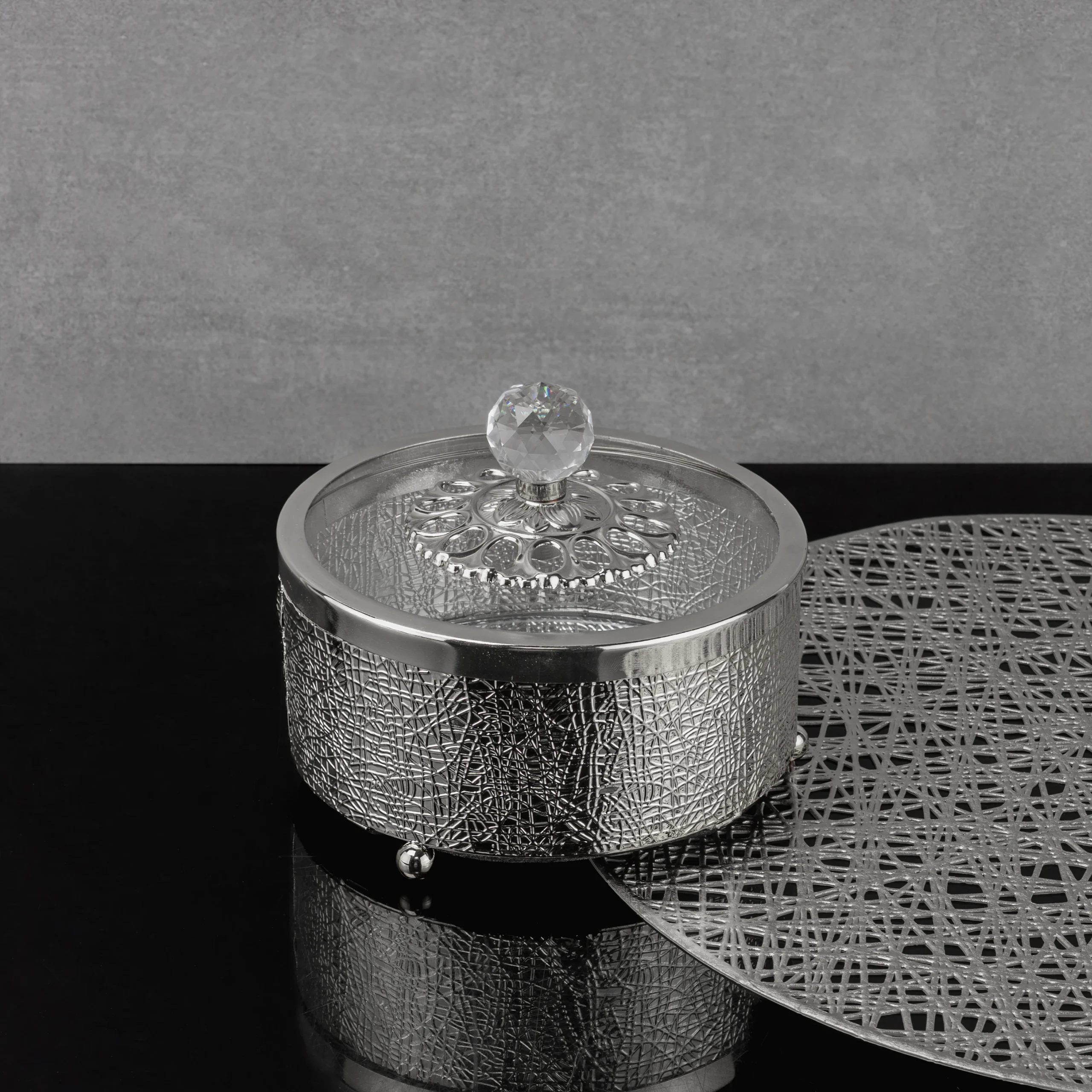 ZEYVE PARLAK METAL YUVARLAK ŞEKERLİK 15 CM *12